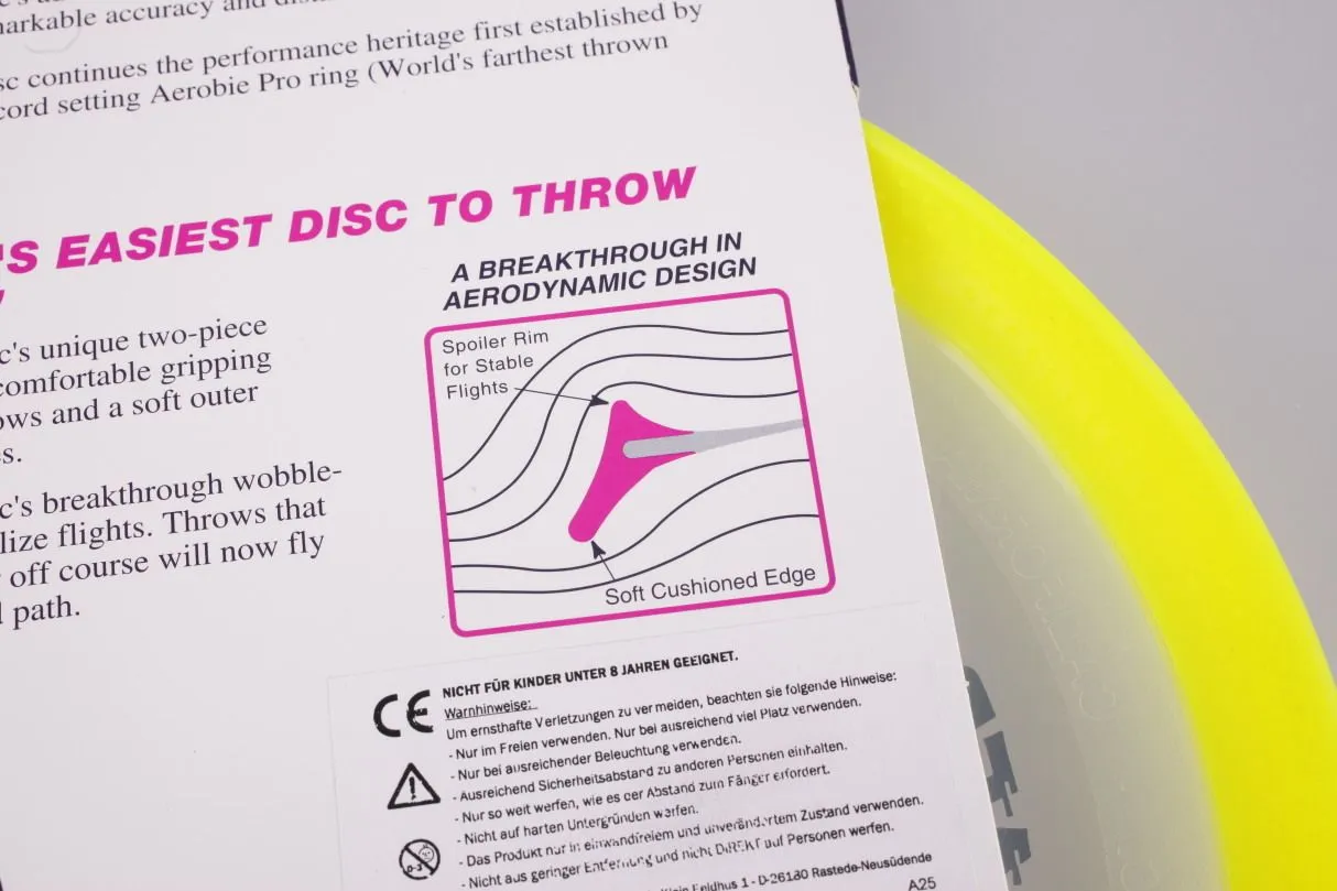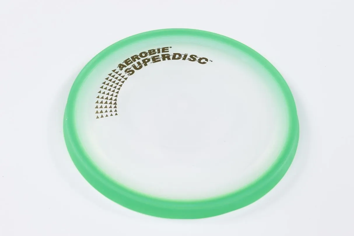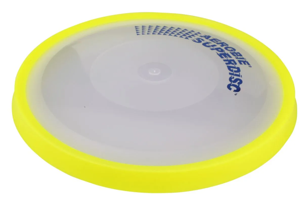 Die Wurfscheibe Superdisc von AEROBIE: Robuster, bruchsichere Flugscheibe mit angenehm weichen Softkanten. Das innovative Spoiler-Design gewährleistet exakten, präzisen Geradeausflug und eine relativ windunempfindliche Flugbahn. Selbst Ungeübte sind mit der Aerobie Superdisc in der Lage präzise und weite Würfe zu machen.