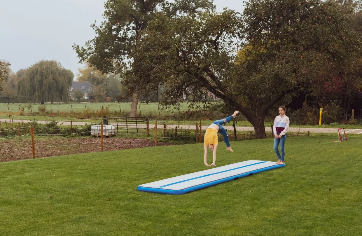 Der AirFloor bietet eine einzigartige Trainingserfahrung, sei es beim Turnen, der Wettkampfvorbereitung oder dem Schulsport. Er lässt sich problemlos transportieren und ist binnen wenigen Minuten aufgepumpt.
