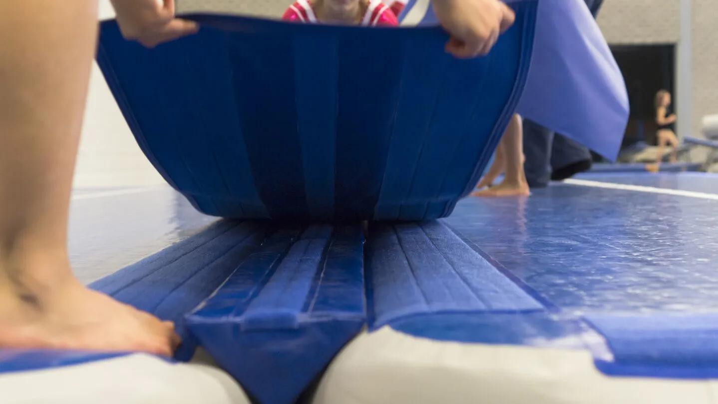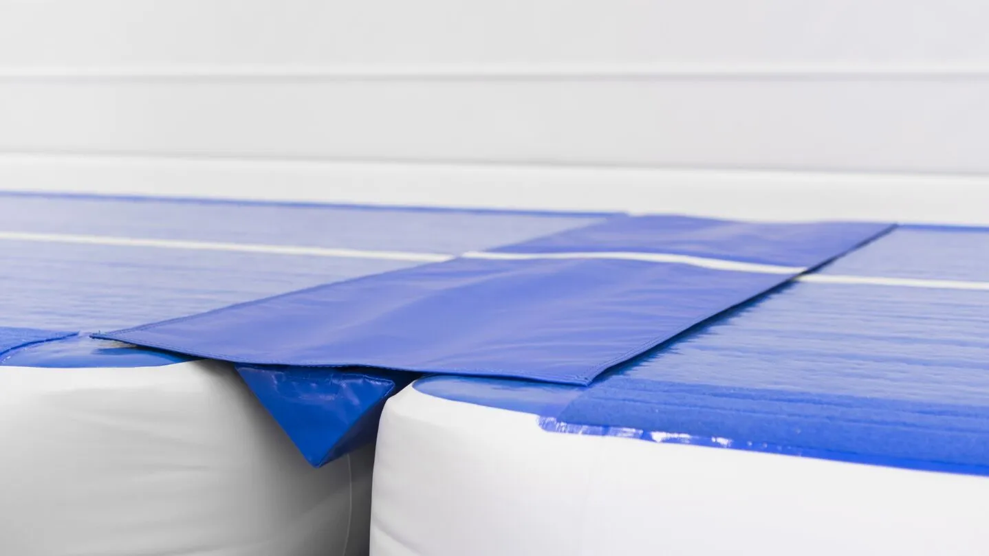 Um zwei Trainingsflächen nahtlos zu verbinden, gibt es für die AirFloors und AirTracks das passende Verbindungsstück. Der Klettverschluss sorgt dafür, dass die Produkte nicht verrutschen können und somit einen kaum spürbaren Übergang schaffen.