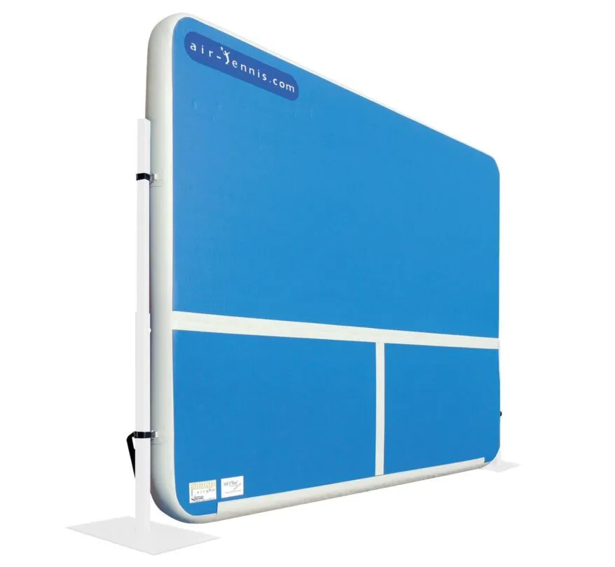 Die neuartige Tennisballwand für das Training alleine oder mit einem Partner. Die luftgefüllte Wand kann längerfristig installiert werden oder in Minuten aufgeblasen, aufgebaut und wieder abgebaut werden. Sie kann einfach an Zäunen oder Hauswänden angebracht werden oder mithilfe des erhältlichen Ständerpaares frei aufgestellt werden, um von beiden Seiten bespielbar zu sein.