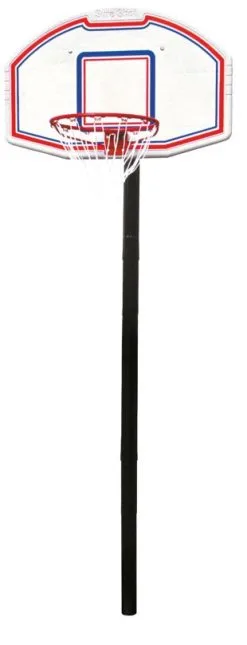 Streetballanlage für den Freizeitbereich. Das Basketball Zielbrett aus Kunststoff wird direkt, ohne Ausleger am Pfosten angebracht. Die komplette Basketballanlage besteht aus einem massivem Standard Basketball Korb aus Stahl und einem wetter- und witterungsbeständigem Basketball Netz aus Nylon. Der Basketballkorb kann beim Aufbau in beliebiger Spielhöhe bis 305 cm montiert werden.