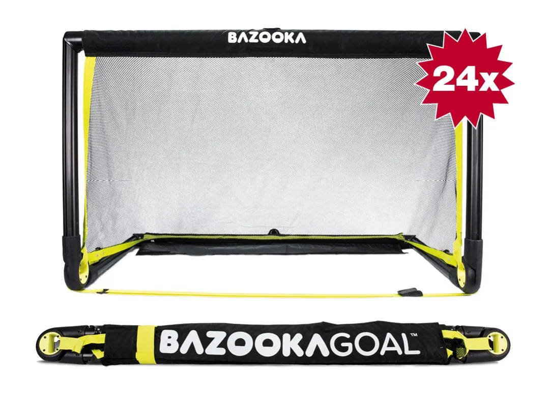 Das BazookaGoal® Original ist das perfekte Fußballtor für Profisport und Freizeitzwecke. Das 24er-Set liefert Fußballvereinen die Komplettausstattung für die Spieltage der G-, F- und E-Jugend mit den neuen Spielformen des DFB. An einem Spieltag mit der neuen Spielform „2 vs. 2“ sind 24 Minitore (max. Größe 2,0 m x 1,2 m) gleichzeitig im Einsatz.