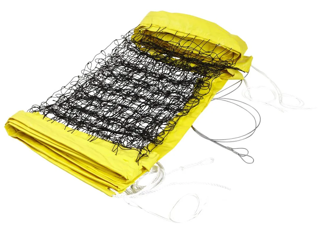 Das Beach-Volleyballnetz TRAINING ist ein Freizeit- und Trainingsnetz nach offiziellen Richtlinien und mit 8,50 bzw. 9,50 x 1 m Länge. Die Netze bestehen aus schwarzer, 2 mm starker Polethylenleine in der Maschenweite 10 cm und sind ringsum mit einem 75 mm breitem, gelben Einfassband versehen. Gespannt wird das Netz oben mit einem 10,7 bzw. 11,7 m langen Stahlseil (Ø 3 mm) . Zur unteren Abspannung sind Spannleinen aus Polyethylen angebracht.