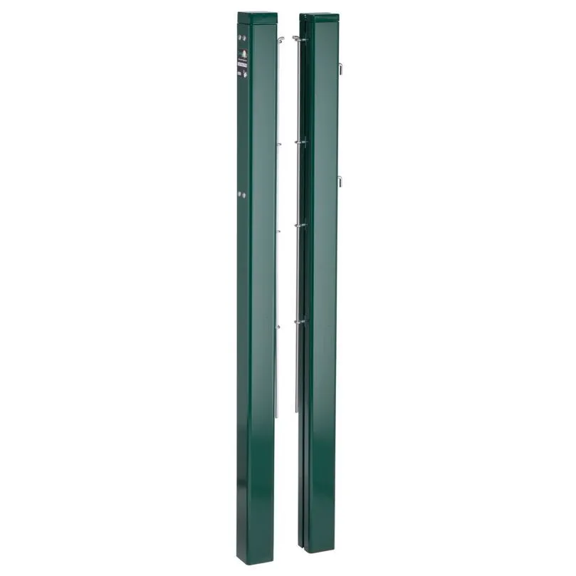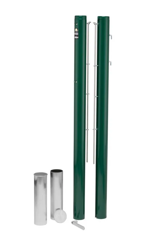 Die Tennispfosten aus Aluminium, bietet eine bequeme und einfache Installation und Befestigung des Tennisnetzes. Im inneren des Tennisnetzpfosten ist eine innenliegende Trapez-Spannmechanik integriert, die mit einem Aluminiumschlüssel betrieben werden kann. Dadurch lässt sich das Tennisnetz schnell und praktisch aufspannen. Zur Sicherung des Pfostens wurde eine steckbare Abdeckkappe aus Aluminiumguss mit einer angebrachten Sicherungskette entwickelt. Die Netzhaltestange wird mithilfe einer Nut befestigt und sorgt somit für zusätzliche Stabilität und Langlebigkeit.