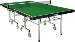 Beim ProTec handelt es sich um einen sehr robusten, wetterfesten Kompakttisch, der optimal für den Outdoor-Einsatz geeignet ist und eine Menge Spielspaß auch in Schulen und Vereinen garantiert. Die 6mm starke Melaminharzplatte mit stabilem 50mm Rahmenprofil ist absolut wetterfest und sorgt für ein optimales Absprungverhalten. Der Tisch verfügt über ein trendiges matt-schwarz pulverbeschichtetes Untergestell aus 50mm Quadratrohr und ist somit sehr stabil und verwindungssteif. Die Unterkonstruktion ist mit 4 großen, lenkbaren Doppelrädern mit Gummilauffläche ausgestattet, sodass die Tischtennisplatte besonders leicht geschoben werden kann. Die bis zu 30mm höhenverstellbaren Standfüße dienen zur Anpassung an unebene Untergründe. Dank des neuen Verriegelungssystems lassen sich die Tische einfach, schnell und nur mit einer Hand aufklappen. Durch die Kompaktbauweise garantiert Schildkröt eine erhöhte Kippstabilität und besonders wenig Platzbedarf im zusammengeklappten Zustand. Die Platte mit integrierter Netzgarnitur bietet auch die Playback-Funktion, sodass dem Alleintraining nichts im Wege steht. Selbstverständlich ist bei dieser Platte seitlich eine Schläger- und Ballhalterung integriert. Der Tisch bietet nicht nur ein Höchstmaß an Qualität und Ausstattung „Made in Germany“, sondern sind auch noch mit ihrem trendigen, coolen Design ein absoluter Eyecatcher. Die Ersatzteilversorgung ist dauerhaft sichergestellt. Hierzu eine kurze Email an uns. Bitte beachten Sie, dass die Tischtennisplatte vor der Verwendung montiert werden muss. Eine Anleitung liegt selbstverständlich bei! Sollten Sie lieber ein Montagevideo bevorzugen, empfehlen wir Ihnen unseren Schilkröt-Channel auf Youtube, wo Sie alle Aufbauvideos finden werden.
