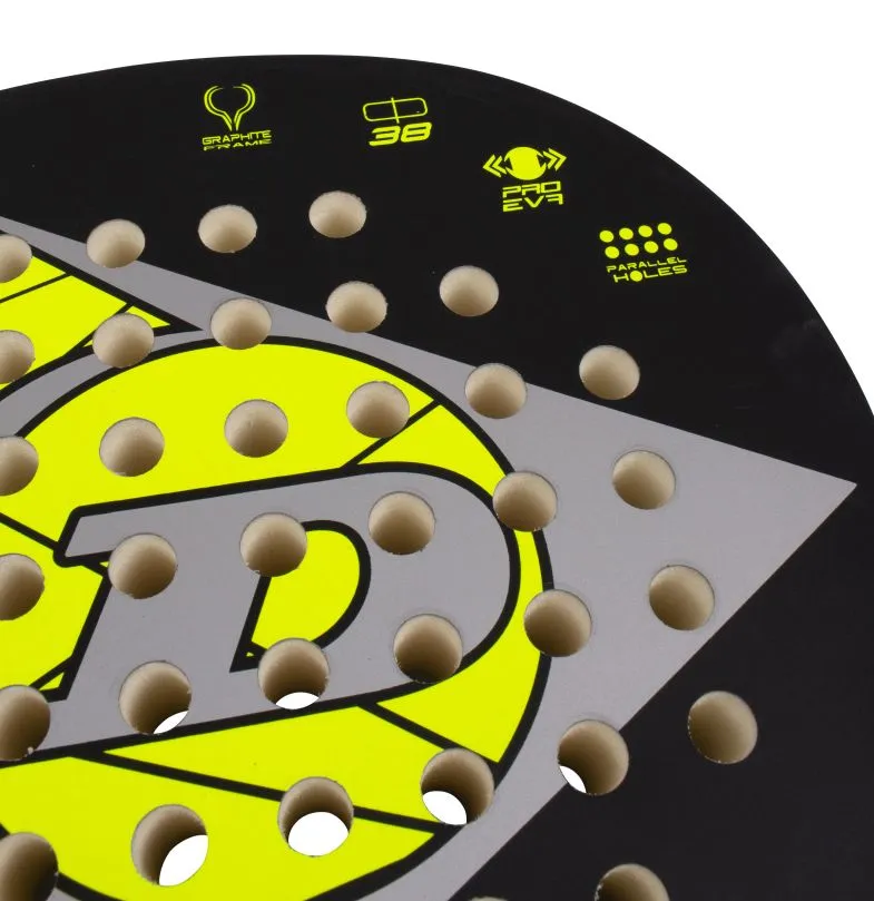 Graphit-Rahmenkonstruktion ideal für Anfänger und Fortgeschrittene. Hybrid-Kopfform für extra Power mit breitem Sweetspot. Inklusive einer Schlägerhülle.