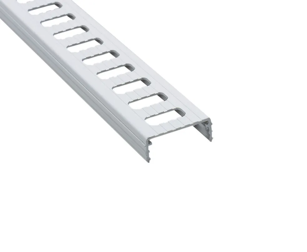 Garnitur aus Kunststoff mit Aussparungen. 10 Stücke mit 4 cm Breite und einer Länge von je 1,6 m. Gesamtlänge: 16 m. Inkl. T-Verbinder. Nageloser Selbsteinbau möglich.