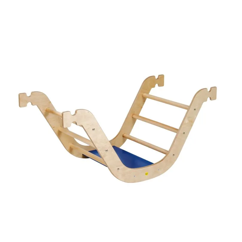 Die Kletterwippen gibt es in zwei verschiedenen Ausführungen. In der kleineren Mini Variante mit breiten Stufen für einen sicheren Tritt und in der größeren Maxi Variante mit Holmen statt Stufen. Beide Varianten sind vielfältig einsetzbar und fördern Grobmotorik, Koordination und Balance. Kinder können über die Kletterwippen klettern oder krabbeln, unter ihr hindurch kriechen oder in ihr wippen.