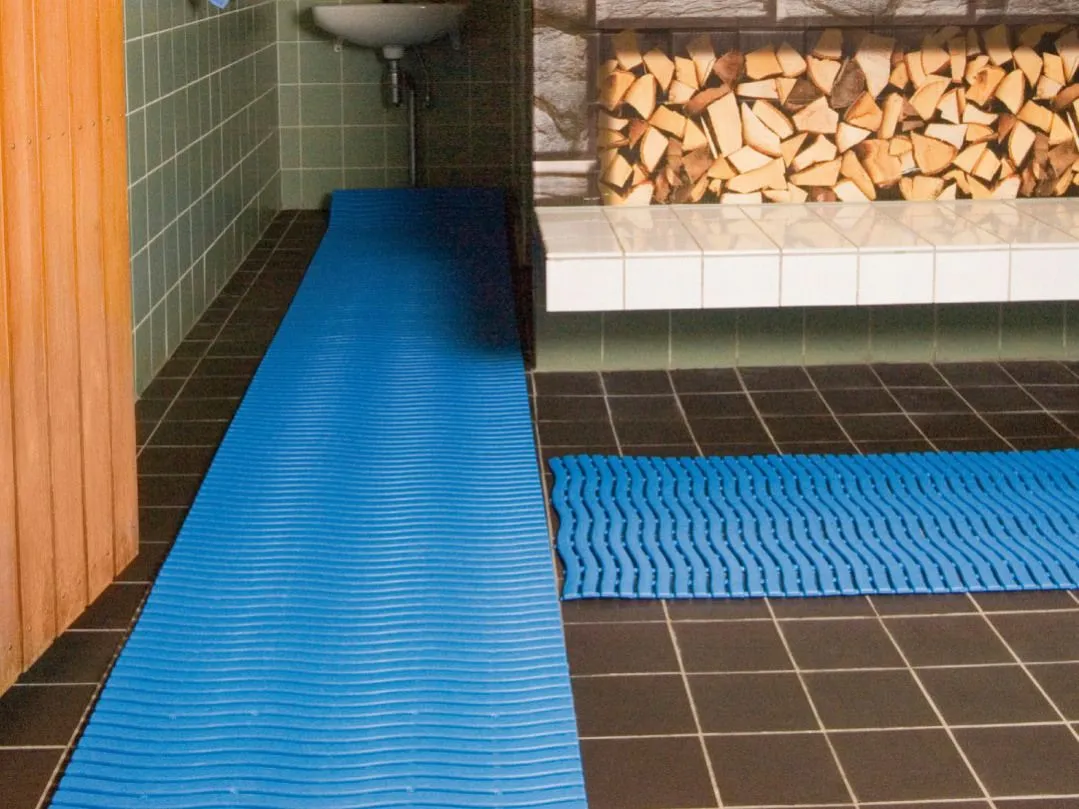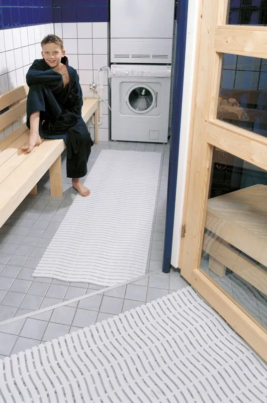 Hygienischer und rutschfester Nassraumbodenbelag für Schwimmbad, Sauna, Umkleide, Solarium, etc. Durch Verbindungsclips lassen sich auch breitere Flächen mit dem Durowalk problemlos auslegen. Der Bodenbelag zeichnet sich durch seine Rutschfestigkeit, einfache Reinigung und hohe Hygiene sowie einer hohen Temperaturbeständigkeit aus.