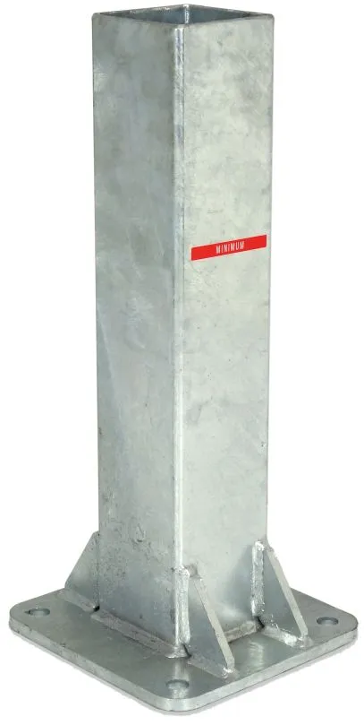– Bodenhülsen aus feuerverzinktem Stahl zum dauerhaften Aufschrauben auf ein Fundament