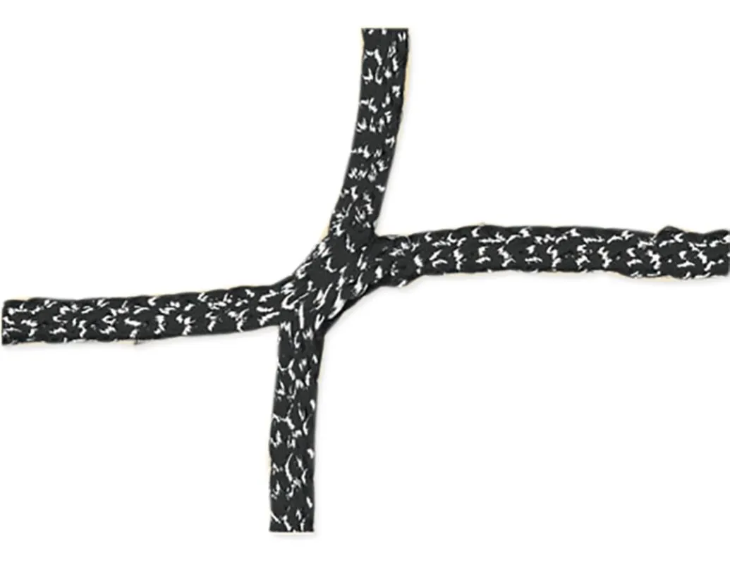 An den Enden dieser Volleyballnetze ist eine Kunststoffscheibe eingearbeitet, die verhindert, dass das Seil ungewollt in die Einfassung rutscht. An beiden Seiten sind seitlich Glasfaser-Polyesterstäbe eingearbeitet.
