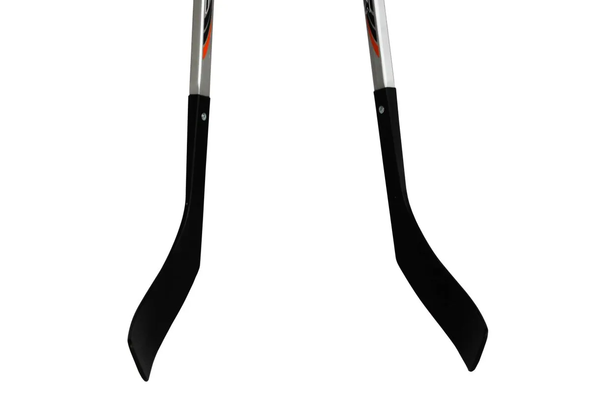 Schläger für Linksschuss: Die Biegung der Schaufel zeigt nach rechts, der Schläger wird links vom Körper gehalten. Die linke Hand greift nach unten zum Schlägerblatt. Schläger für Rechtsschuss: Die Biegung der Schaufel zeigt nach links, der Schläger wird rechts vom Körper gehalten. Die rechte Hand greift nach unten zum Schlägerblatt.