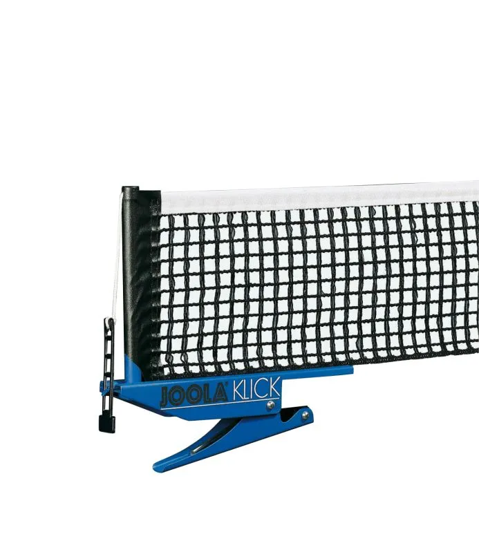 Das Tischtennisnetz KLICK von Joola entspricht der EN 14468-2 B Schul- und Vereinssport und hat die sogenannte Klemmtechnik. Dabei werden die Netz Pfosten jeweils nur den TT-Tisch geklemmt, was für ein sehr schnellen Auf- und Abbau sorgt. Die Metall Garnitur von diesem Tischtennisnetz ist aus massivem Metall (Gewicht inklusive Verpackung ca. 1 kg), was die Netzgarnitur sehr stabil macht. Das Tischtennisnetz bzw. die Netzgarnitur kommt in einer praktischen Aufbewahrungstasche.