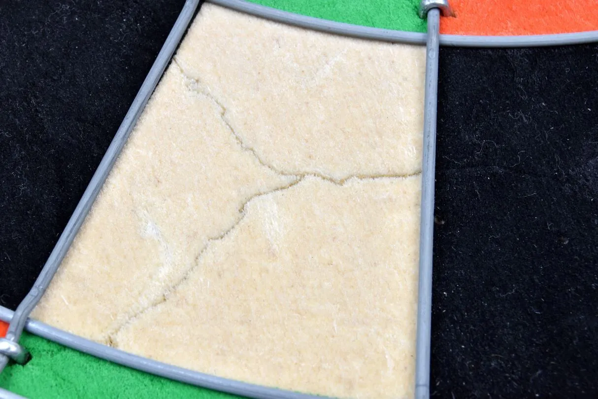 Für die Einteilung der Segmente wird traditionell ein Metalldraht verwendet. Bei diesem Modell ist der Draht abgerundet um unerwünschte Abpraller der Dartspitzen zu verhindern. Die Scheibendicke von 40 mm sowie der Durchmesser und Segmentgrößen entsprechen den Vorgaben der World Darts Federation für Turnierdartscheiben.