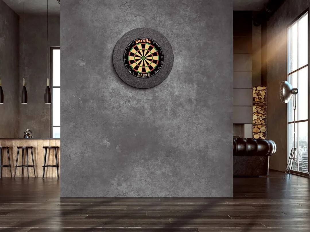 Der anthrazitfarbene Karella® Schallschutz deckt mit seiner Größe einen Bereich von 12 cm rund um das Dartboard ab und eignet sich somit auch aufgrund seiner Materialzusammensetzung ideal als Surround (Catchring). Dieser doppelte Nutzen macht die Anschaffung des Schallschutzes noch wirtschaftlicher. Das Fasermaterial ist Schadstoff geprüft nach Öko-Tex, ohne jegliche chemische Zusätze. Geruchsneutral und umweltfreundlich. Der Schallschutz ist sehr Formstabil und damit sehr robust und langlebig, da er nahezu verschleißfrei ist.