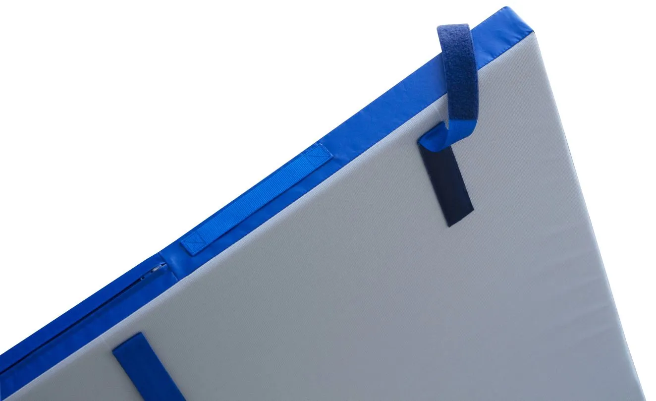 Mit den fest vernähten Gurtbandlaschen an beiden Seiten kann das Polster schnell und einfach an vorhandenen Sprossenwänden befestigt werden. Wird die Turnhalle z.B. als Fußballfeld oder Handballfeld genutzt, sind die Sportler vor einem harten Aufprall an der Sprossenwand geschützt. Durch die Faltbarkeit entsteht eine Aufsprungmatte mit einer Stärke von 16cm, die im Turntraining zusätzlich genutzt werden kann.