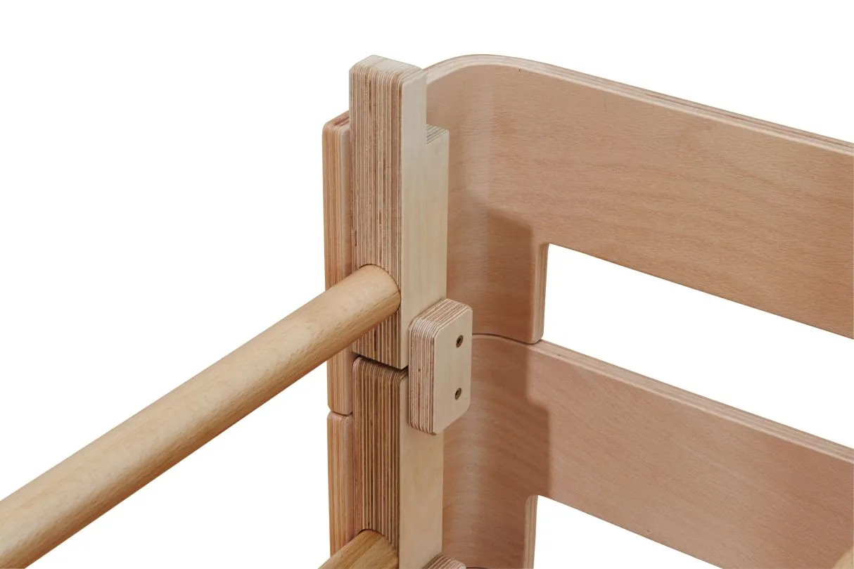 Durch seine allseitig offene Konzeption ist dieses Turnkasten-System das optimale Gerät zur Kombination verschiedenster Anbauteile an allen Seiten. Der Sprungkasten Varianta ist aus hochwertigem Birke-Multiplex gefertigt und naturlackiert, was die schöne Holzoptik hervorhebt. Die einzelnen Teile sind mit superstabilen Eschenholzholmen verbunden, an denen sich Zubehörteile wie Leiter, Rutschbrett, etc. andocken lassen. Das Oberteil ist mit hochwertigem Kunstleder gepolstert und gibt sicheren Grip auf der Oberfläche. Der Turnkasten ist 4- oder 5-teilig erhältlich.