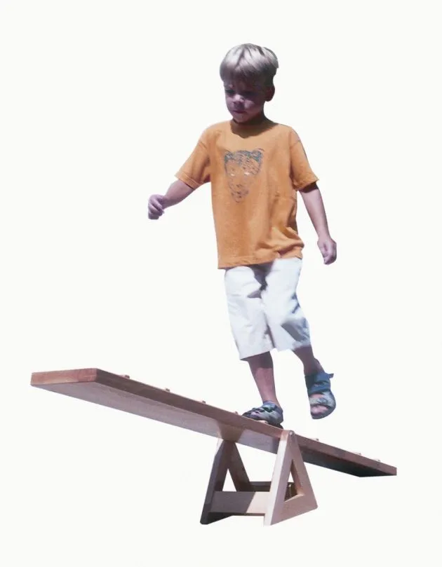 Das Überqueren des schmalen Brettes der Laufwippe schult nicht nur den Gleichgewichtssinn der Kinder, sondern vermittelt auch das Gefühl für den eigenen Körper. Balancieren macht Spaß, sorgt für Freude an der Bewegung und stärkt das Selbstbewusstsein.