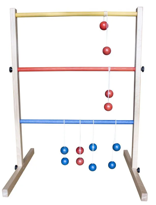 Spannendes Freizeitspiel für die ganze Familie! Die stabile Ausführung aus Buchenholz ist geeignet für Spiele im Innen – wie im Außenbereich. Die verschieden farbigen Sprossen stehen für unterschiedliche Punktzahlen. Das bedeutet je höher die Bälle platziert werden, desto mehr Punkte erhält der Werfer!