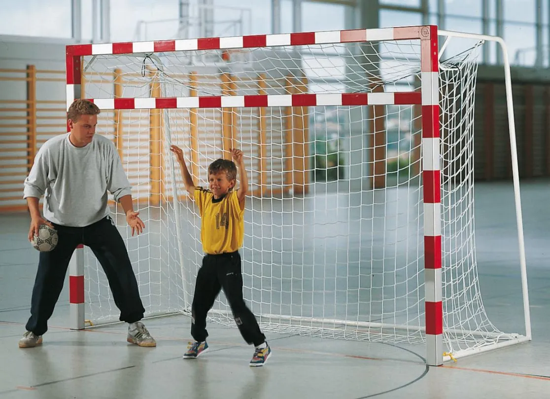 Die Zusatzquerlatte ist für die Reduzierung von einem Handballtor auf ein Mini-Handballtor. Die Zusatzquerlatte ist aus Alu-Profil 8 x 8 cm, eloxiert, mit Befestigungsmaterial. Die Latte für Mini-Handball hat eine stabile Verbindung von den Pfosten des vorhandenen Handballtors und der Zusatzlatte für Mini-Handball durch Laschen und Handräder, die schnellen Ein- und Ausbau ermöglichen, mit farbigen Feldern.