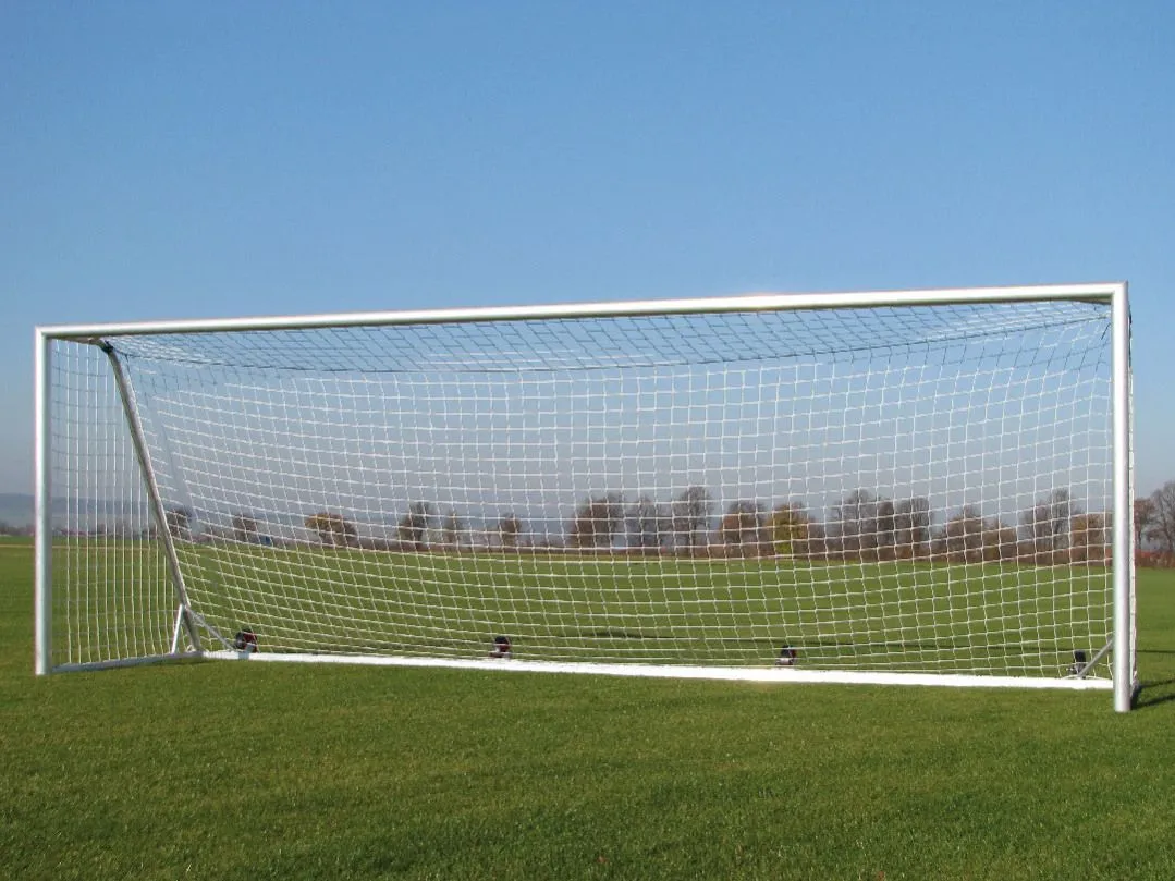 Dieses Fußballtor vom Typ vollverschweißt und transportabel hat zusätzlich 4 angeschweißte Räder mit denen das Fußballtor optimal zu transportieren ist. Dadurch eignet sich dieses Fußballtor perfekt für Hartplätze oder Kunstrasen. Die Pfosten, sowie Latte dieser Tore sind aus einem 120 x 100 mm Aluminium Oval-Profil. Der Bodenrahmen dieser Fußballtore ist aus einem 80 x 80 mm Quadrat-Profil. Dieses Fußballtor ist vollverschweißt und vom Typ freistehende Tore. Die Tor-Farbe von diesem Fußballtor ist Aluminium-naturblank. Als Zubehör dieser Fußballtore sind folgende Utensilien bereits integriert: Netzhaken & Transportrollen (angeschweißt).