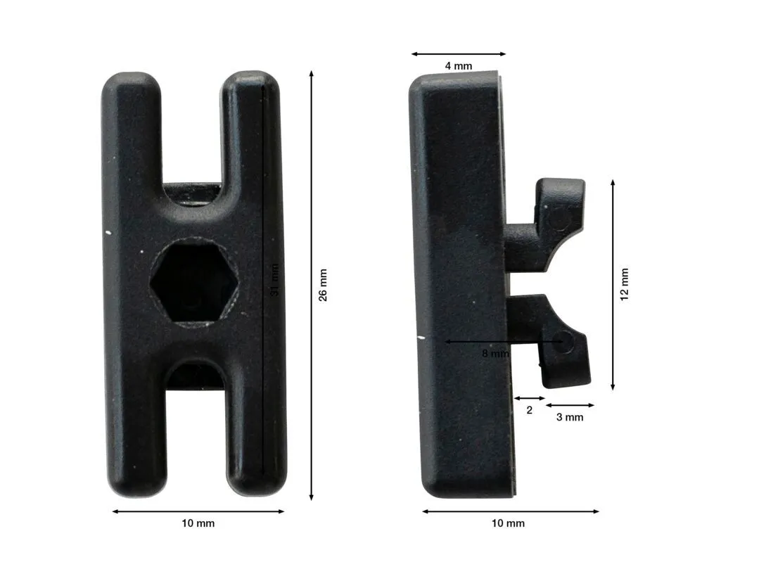Netzhalter aus Kunststoff, hohe Stabilität und Lebensdauer. Einfache Handhabung mit einem Innensechskantschlüssel. Geringes Verletzungsrisiko dank geringer Bauhöhe.