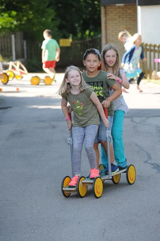 Das Pedalo Family ist ein ideales Sportgerät, um Kinder-Gruppen mit bis zu vier Personen gleichzeitig zu motivieren, sich zu bewegen und gemeinsam Spaß zu erleben. Kinder lernen so spielerisch die Bewegung. Dank der zwei Festhaltestützen erfahren die Kinder von Anfang an Sicherheit und können so Vertrauen zum eigenen Körper aufbauen. Die wichtigsten Lernerfolge sind die spielerische Entwicklung von Motorik, Gleichgewichtsfähigkeit, Reaktionsfähigkeit, Bewegungsqualität und Haltungsqualität.