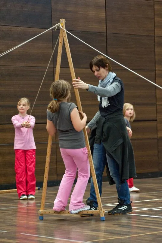 Zu Beginn eines Teamevents wird das Dreieck aufgestellt und die vier Seile gespannt. Dann stellt sich der Hauptakteur mitten auf den Querbalken und versucht mit Hilfe seiner 4 Partner das Gleichgewicht zu finden und zu halten. Jetzt muss die richtige Strategie gefunden werden um das „laufende A“ in Bewegung zu versetzen, denn von alleine passiert gar nichts. Laufen tut das Dreieck aus Holz nur, wenn die Seile im richtigen Rhythmus straff gezogen und wieder nachgegeben werden und dazu gehören die richtigen Kommandos.