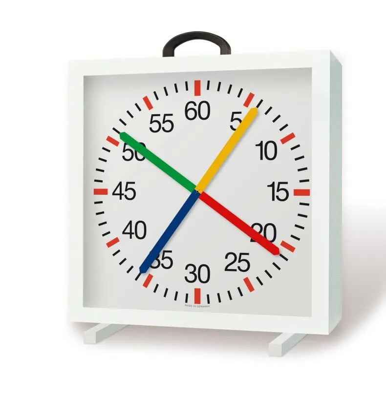 Die wassergeschützte Trainingsuhr mit vierfarbigem Sekundenkreuz ermöglicht die Anzeige von Zwischenzeiten beim Schwimmen. Die (Schwimm-)Trainingsuhr kann zeitgleich von beliebig vielen Schwimmern genutzt werden. Die abgelaufene Zeit wird in Minuten und Sekunden angezeigt, ist also (auch) für die Zeitmessung von Langstrecken geeignet. Der Batteriebetrieb ermöglicht einen mobilen Einsatz.