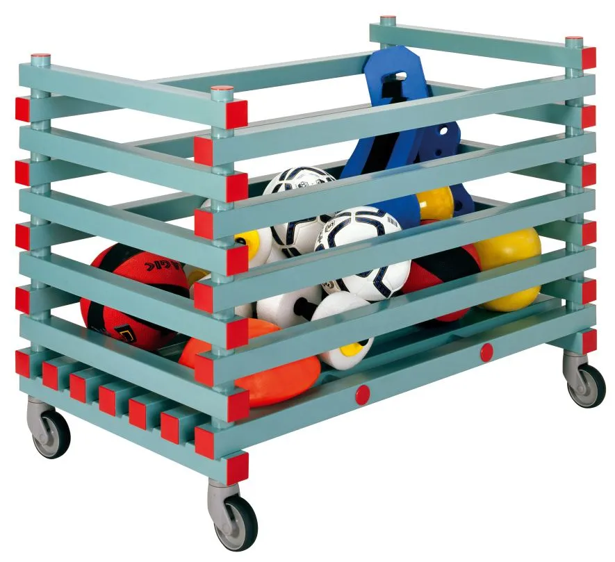 Der ideale Materialwagen für das Schwimmbad – resistent gegen Chlorwasser und Salzwasser. Wasserbälle, Aquajogging-Gürtel und Schwimmflügel, Aqua-Hanteln und vieles mehr können ideal gelagert werden. Durch die Öffnungen kann das Wasser schnell ablaufen – dies sorgt für eine schnelle Trocknung und Lüftung Ihrer Materialien und erhöht damit deren Lebensdauer. Der Kunststoff-Wagen ist robust, einfach abwaschbar und bietet ein breites Anwendungsgebiet.
