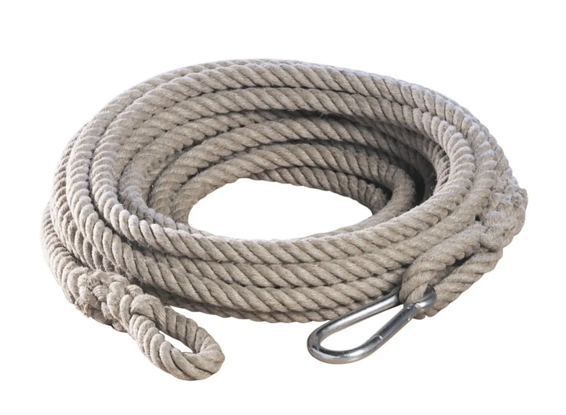 Rundtau aus 100% Flachs, 16 m lang, Taustärke 20 mm, mit 2 Schlaufen und 1 Karabinerhaken sicher endlos zu verbinden. Das Ziehtau in Hanfoptik ist für Sport, Fitness, Freizeit etc. geeignet.