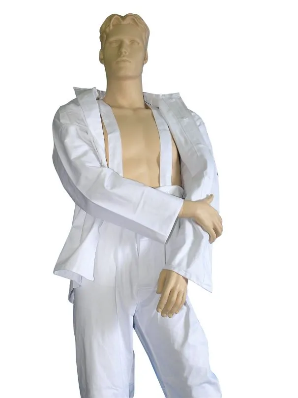 Set, bestehend aus einer Jacke und Hose, für das Kleiderschwimmen. Wahlweise mit Gürtel oder Hosenträger in verschiedenen Größen erhältlich. Der Schwimmanzug ist ideal für das Kleiderschwimmen geeignet, z.B. im Rahmen des Rettungsschwimmens der DLRG.