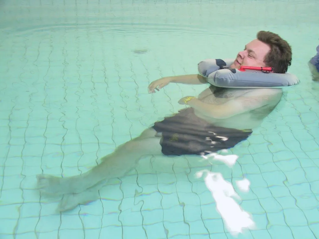 Der Schwimmkragen für Badetherapie und Rehabilitation, für unsichere Schwimmer und für Menschen mit Behinderung. Der Therapiekragen ermöglicht eine komfortable Position, die den Kopf sicher über Wasser hält. Er dient der Sicherheit bei Behandlungen im Bewegungsbad, bei medizinischen Bädern oder Reinigungsbädern sowie bei Unterwassermassagen im Wannenbad.