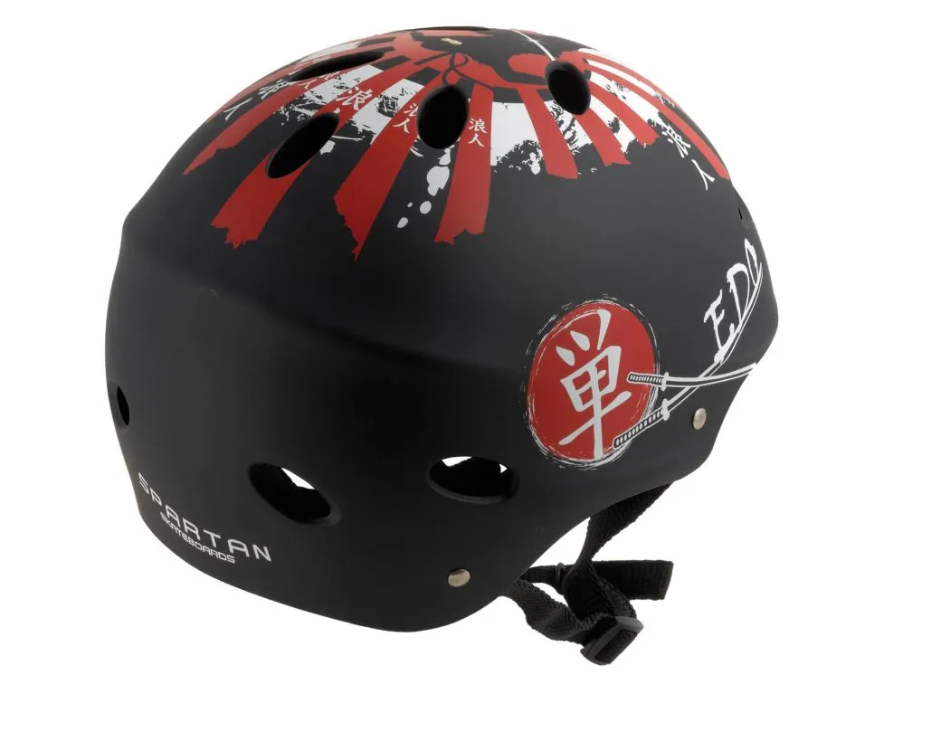Der Skate Helm ist ein solider aber leichter Skaterhelm in trendigem Design. Der Helm besitzt eine Schale aus hartem, stoß- und schlagsicherem ABS-Kunststoff mit einem originellen Design. Die EPS-Schaumpolsterung und die Lüftungsöffnungen des Helmes sorgen dafür, dass der Helm auch nach längerer Zeit noch angenehm zu Tragen ist und bequem sitzt. Der Skaterhelm bietet Schutz bei vielen Rollsportarten und ist zudem auch gut geeignet für Waveboars, Snakeboards und Longboards, für Scooter und Skateboards, für Inliner, beim Eishockey oder Fahrradfahren. Die Helme sind über den verstellbaren Riemen mit Click-Verschluss und den verschiedenen Einsätzen an jede Kopfgröße individuell anpassbar.