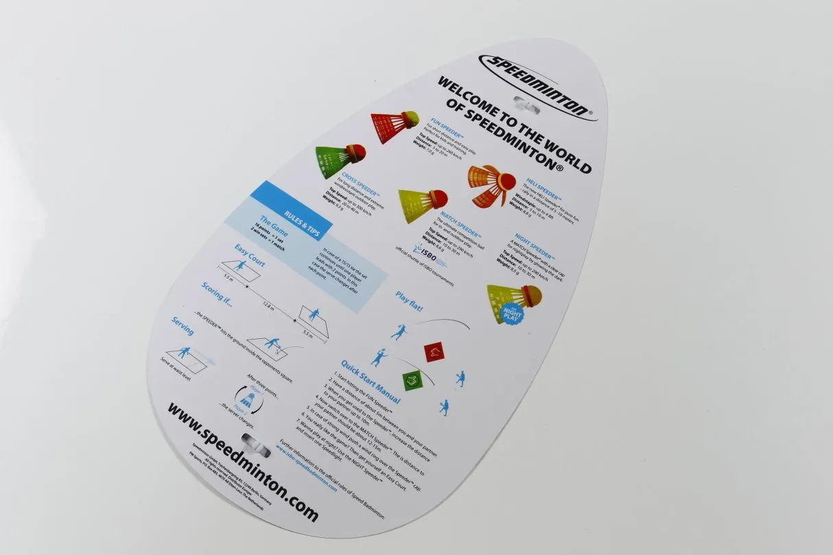Speedminton ist eine Racketsportart (Rückschlag-Spiel), bei der neuartige, speziell entwickelte Federbälle, die sogenannten „Speeder“ mit bemerkenswertem Drive gespielt werden. Sie zeichnen sich dadurch aus, dass Sie windstabiler und schneller sind und zudem weiter fliegen als ein herkömmlicher Badminton- oder Federball. Die Windringe (3 g) dienen dem Beschweren der Speeder für mehr Windstabilität. Ohne Netz und Regeln, wo auch immer Sie Platz finden – oder als heißer Wettkampfsport, vom einfachen Fun-Spaß-Spiel mit Tormarkern (in jedem Set dabei) bis hin zu Wettkampf auf dem Speedminton Easy Court oder auf Tennisplätzen.