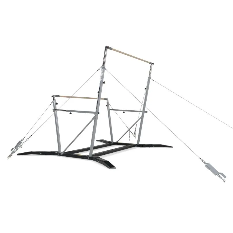 Auf vielfachen Wunsch wurde dieses neue freistehende Gerät entwickelt, um in Turnhallen ohne Verspannungsmöglichkeit auch das Stufenbarrenturnen zu ermöglichen. Für Geübte kann der Stufenbarren zusätzlich verspannt werden, was bei großen Schwüngen empfehlenswert ist. Geeignet für Kinder und Jugendliche.
