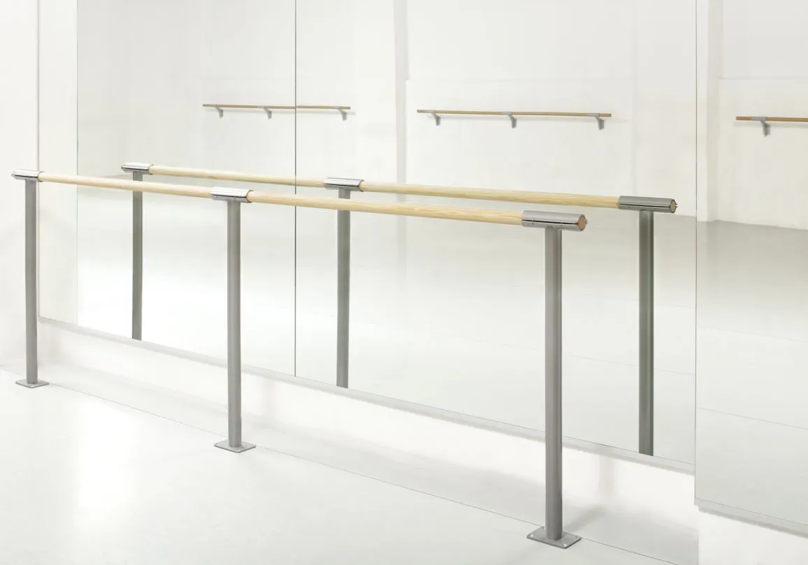 Es wird ein Maximalabstand von 2 m zwischen den Halterungen empfohlen. Lieferung ohne Ballettstange.