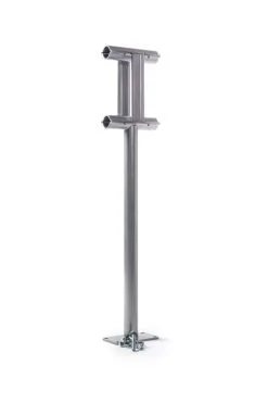 Standfuß für zwei Ballettstangen in fester Höhe zur Bodenmontage. Die Befestigungsplatte wird an 4 Punkten am Boden verschraubt. Somit lässt sich die Ballettanlage hervorragend vor Spiegelwänden oder nicht tragfähigen Wänden montieren. Zudem können zwei bzw. vier Ballettstangen nahtlos verbunden werden.