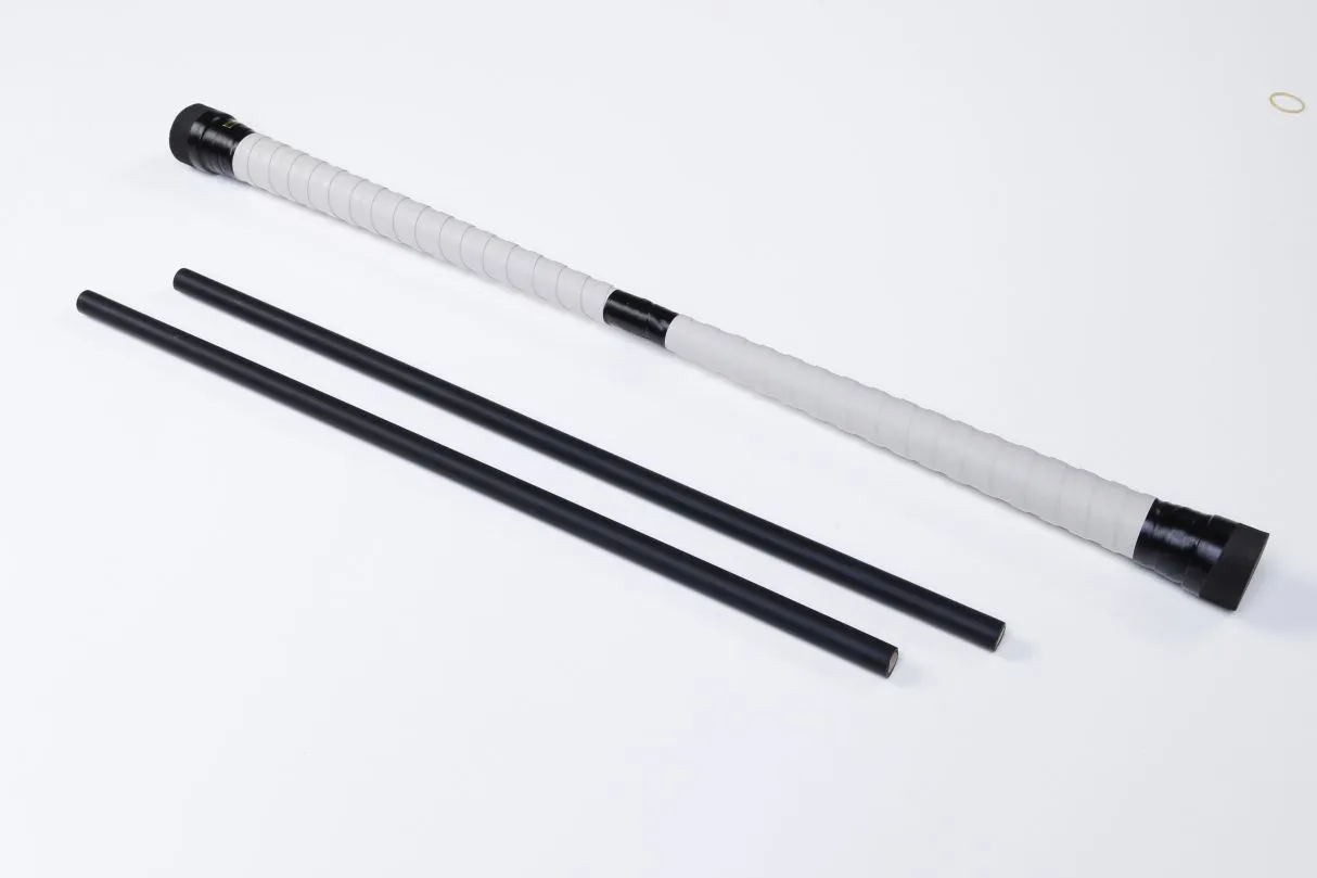 Devilstick Set bestehend aus einem Devilstick und zwei Handstäben. Die klassische, konisch geformte Ausführung des Devilsticks besteht aus einem stabiler Holzkern, der mit griffigem Textilband umwickelt ist. Die Mittelmarkierung und die Kunststoffkappen an den Enden dienen der besseren Orientierung. Der Devil-Stick ist mittels Handstäben immer in Bewegung zu halten, er wird hochgeschleudert und mit den beiden Handstäben gefangen oder von links nach rechts mit den Handstäben geworfen.
