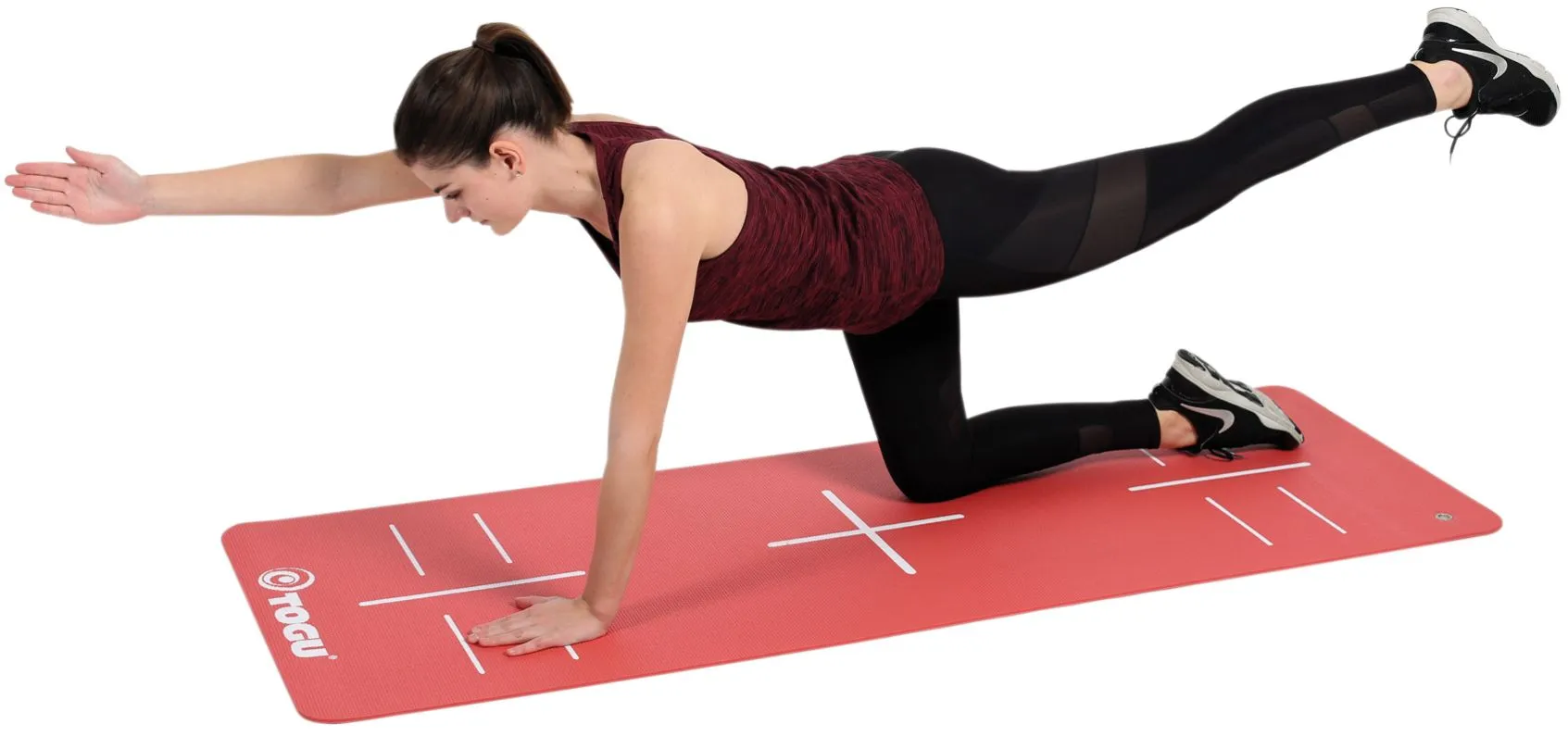 Die Gymnastikmatte ist vielseitig für das Fitnesstraining, Pilates und Yoga einsetzbar. Sie hat eine beidseitige Bedruckung für koordinative Sprung- und Laufübungen oder als Orientierung beim funktionellen Training. Sie besteht aus einem elastischen, rollbaren Material mit optimalen Dämpfungseigenschaften und rutschhemmender Ober- und Unterseite.