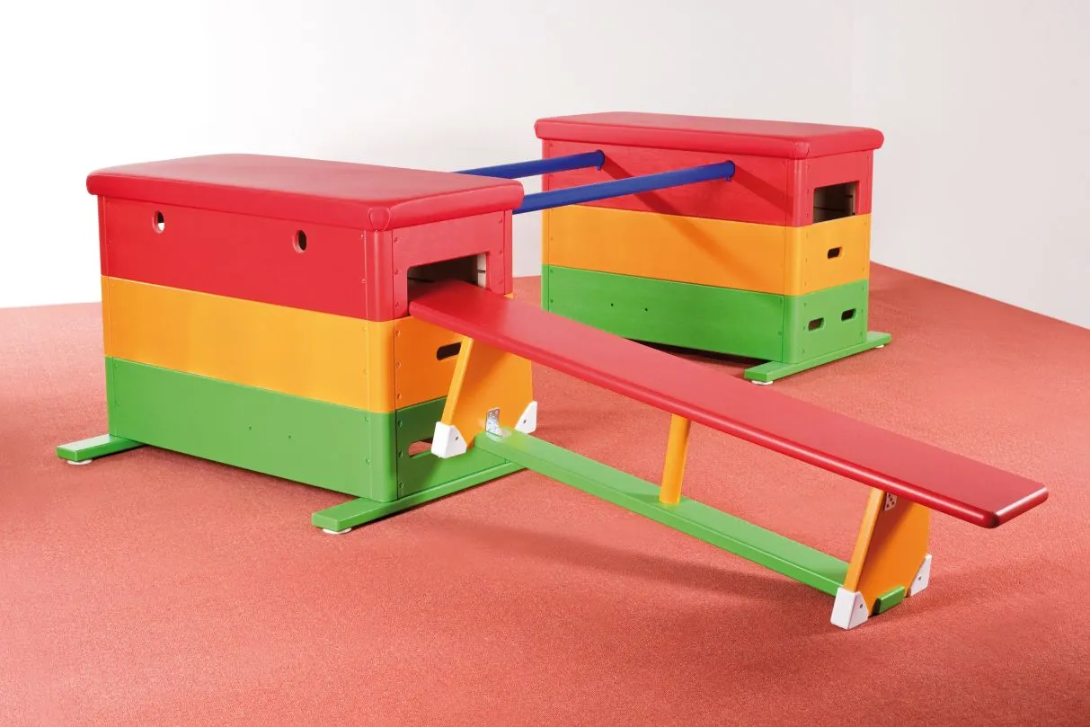 Mit dem Einhängen der Holme auf verschiedenen Höhen gewinnen die Turner stufenweise Selbstsicherheit und Selbstvertrauen – nach dem erfolgreichen Balancieren über beide Stangen oder einen einzelnen Holm. Durch Höhe und Anzahl der einzelnen Elemente werden die Schwierigkeitsstufen ganz individuell variiert. Am Ende der Übung steht das Springen und sichere Landen von variablen Ebenen.
